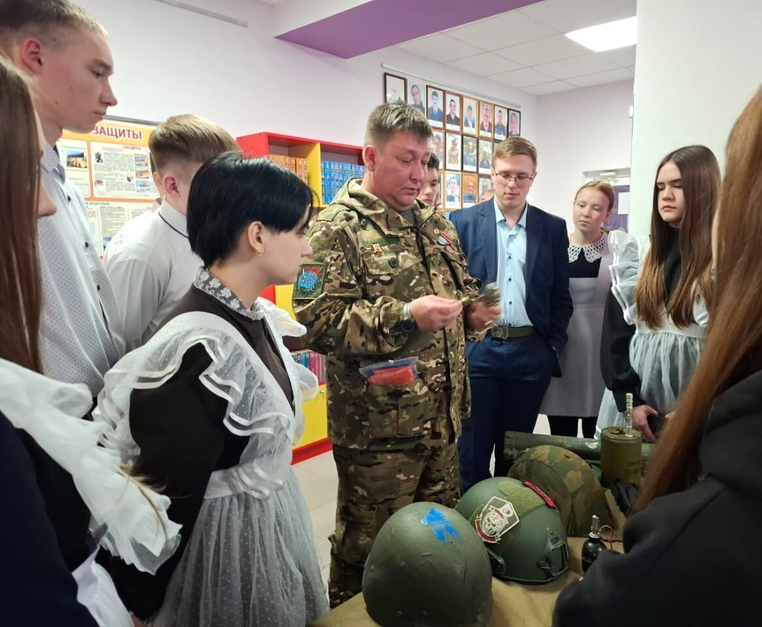 Активисты рассказали о героических буднях спасателей и военных, привели примеры мужества из повседневной жизни. Вспомнили земляков, сражавшихся за свободу Родины в годы Великой Отечественной войны, и выпускников школы, павших в ходе Специальной военной операции.