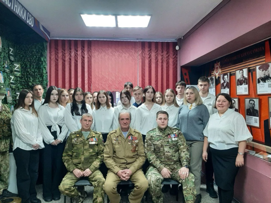 С учащимися школ и колледжей города встретились представители «БОЕВОГО БРАТСТВА» Ленинск-Кузнецка, участники Афганской войны и Чеченской кампании Сергей Иванов и Александр Салтыков, и действующий участник СВО. В ходе беседы ветераны рассказали о событиях, в которых им довелось участвовать, ответили на вопросы учащихся.
