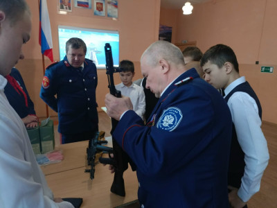 «На уроке мужества школьникам были представлены два автомата Калашникова АК-74 для изучения их устройства», — сказал член Покровского районного отделения «БОЕВОГО БРАТСТВА» Сергей Павликов.