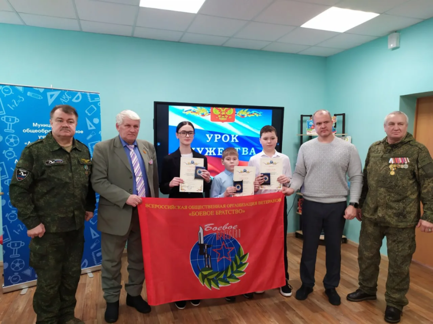 В завершение урока Марс Салеев вручил дипломы и памятные медали пяти победителям конкурса «Память сильнее времени», учреждённого «БОЕВЫМ БРАТСТВОМ».