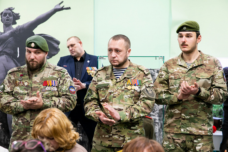 Во второй части мероприятия представители отделения и ветераны Спецоперации организовали передвижную экспозицию по тактической экипировке участников Спецоперации, рассказали о каждом предмете и его функционале для бойцов, провели примерку и фотосессию для участников мероприятия.