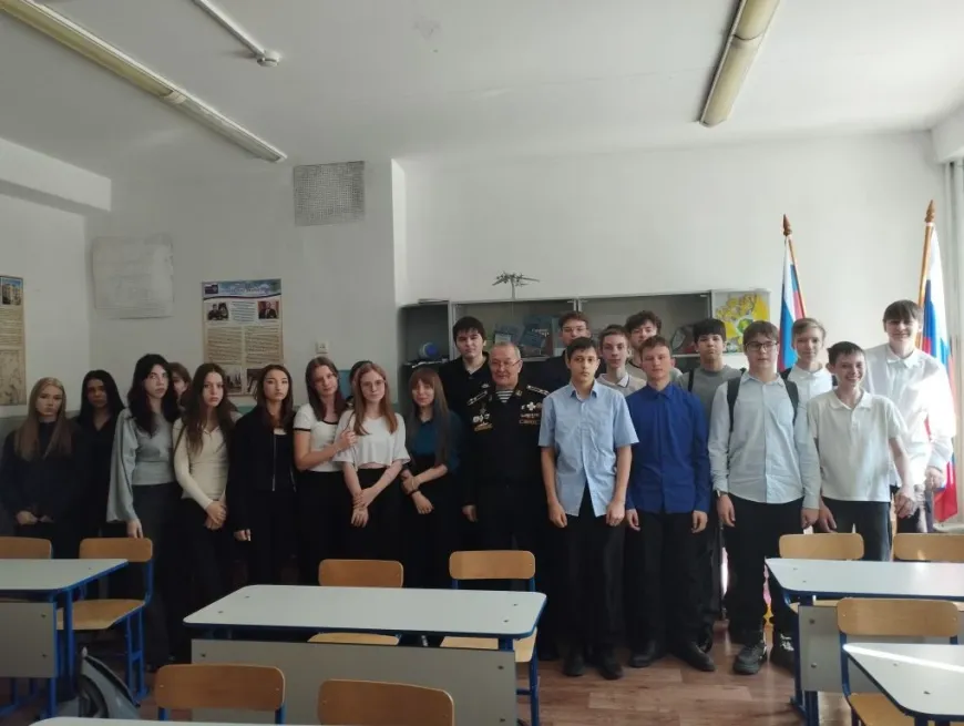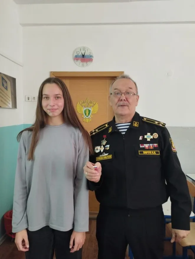 Ветеран рассказал школьникам о героизме пограничников, военнослужащих и моряков при защите интересов нашей Родины. Школьники с интересом слушали о подвигах наших бойцов, задавали много вопросов. Наиболее активным были вручены флотские сувениры.