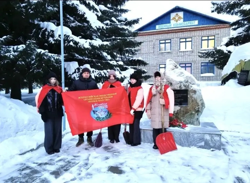 В данном мероприятии участвовали обучающиеся полилингвальной многопрофильной школы №2 вместе с руководителем Мишкинского местного отделения «БОЕВОГО БРАТСТВА» Александром Дмитриевым, которые очистили от снега территорию, прилегающую к воинским мемориалам на Аллее героев.