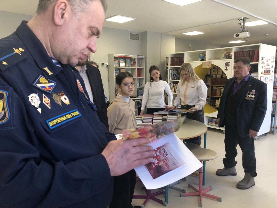 В ходе встречи ветераны рассказали о своей службе и военном опыте в разные годы. Оба ветерана выполняли свой воинский долг в горячих точках. Александр Козинец подарил школьной библиотеке книгу «Вспомним Афганистан», автором которой является известный военный репортер Вячеслав Киселёв.