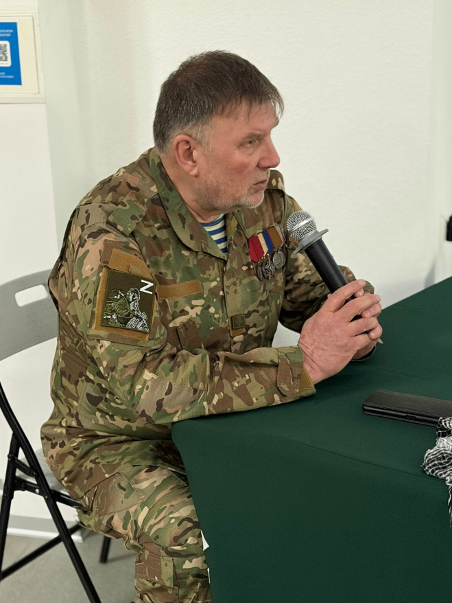 Он начал урок со стихов памяти о войнах Афганистана. Рассказал свою историю службы в Афганистане в составе разведывательной роты ВДВ. Сейчас ветеран является наставником в новом проекте «Герои Югры», участниками которого являются солдаты Спецоперации.