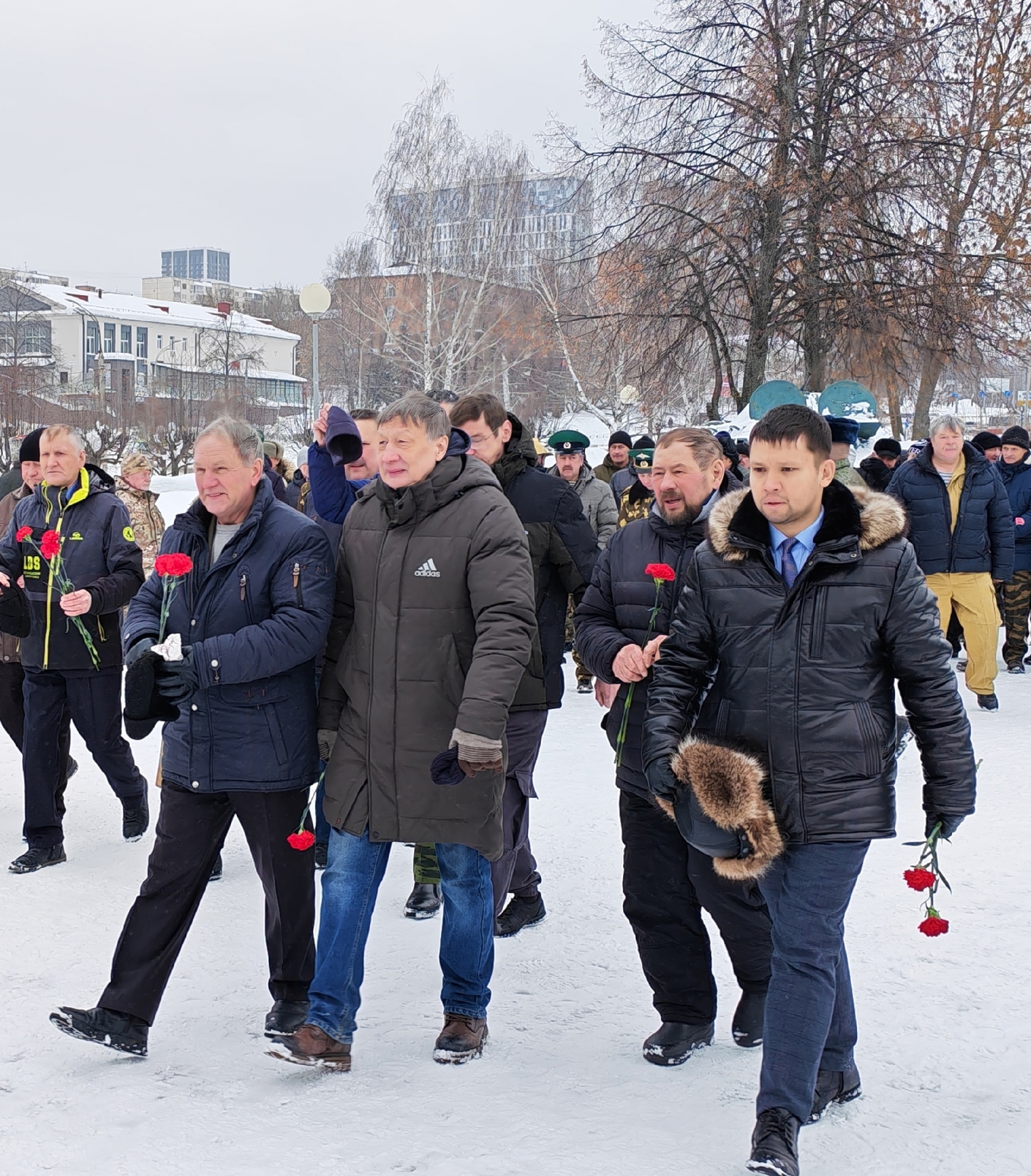 Ветераны Удмуртского отделения «БОЕВОГО БРАТСТВА» Флюр Шагеев и Ануар Шарипов, активисты «Волонтёрской роты» Марат Хамидуллин и Артем Четкарев, а также представители других ветеранских организаций республики почтили память защитников Отечества в сквере Дворца детского и юношеского творчества, территория будущего парка «Патриот».