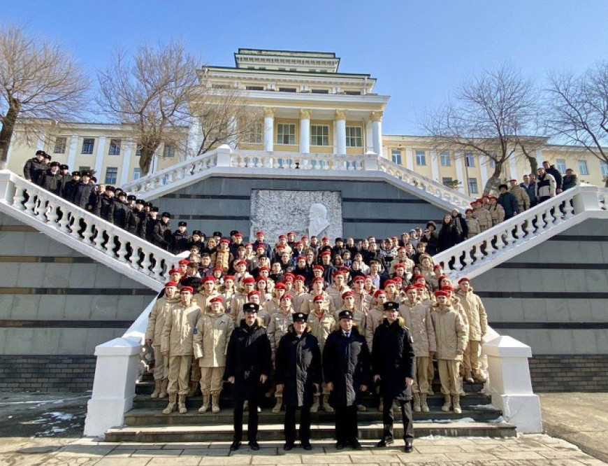 Мероприятие началось с торжественного построения. С патриотической речью выступил заместитель начальника Тихоокеанского высшего военно-морского училища имени С.О. Макарова по военно-политической работе капитан 1-го ранга Павел Дудин.