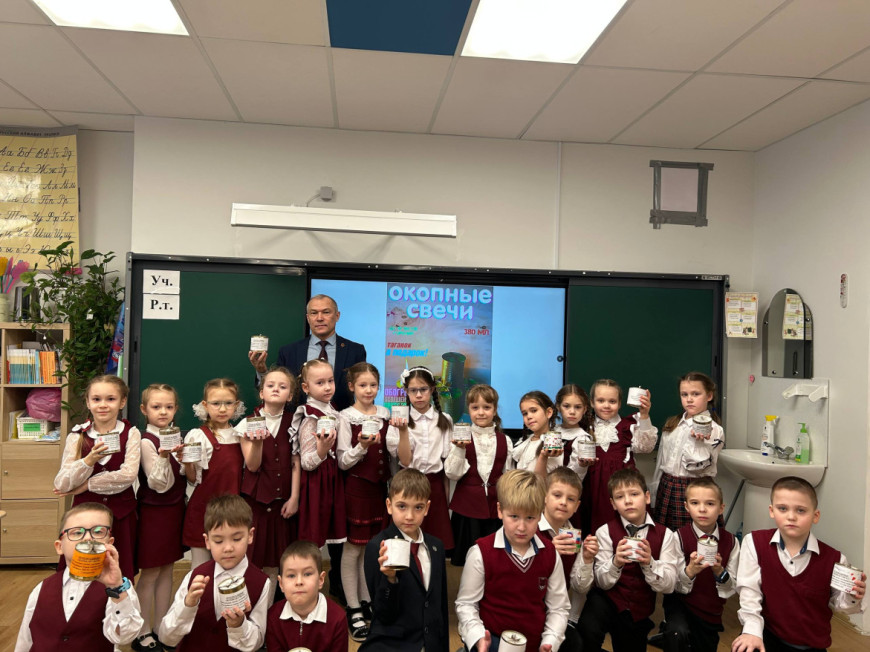Он рассказал о детях, которые в годы Великой Отечественной войны рано повзрослели, взвалили на себя недетскую ношу, как вместе со взрослыми приближали великую Победу в мае 1945 года. Сергей Горинов провел мастер-класс: первоклассники вместе с ветеранами изготовили 80 окопных свечей для бойцов СВО.