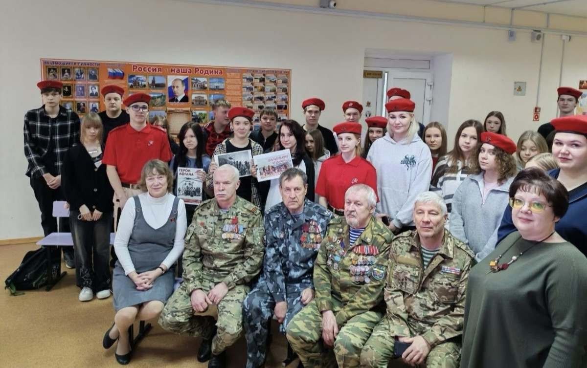 В школе-гимназии № 8 прошёл «Разговор о важном», посвящённый службе в Афганистане, истории пограничных и воздушно-десантных войск, поддержке Российской армии в ходе Специальной военной операции, а также традициям братства среди ветеранов и единству родов войск. Ветераны С. Анисин, А. Машковцев, А. Стариков и Л. Минеев рассказали о своей службе.