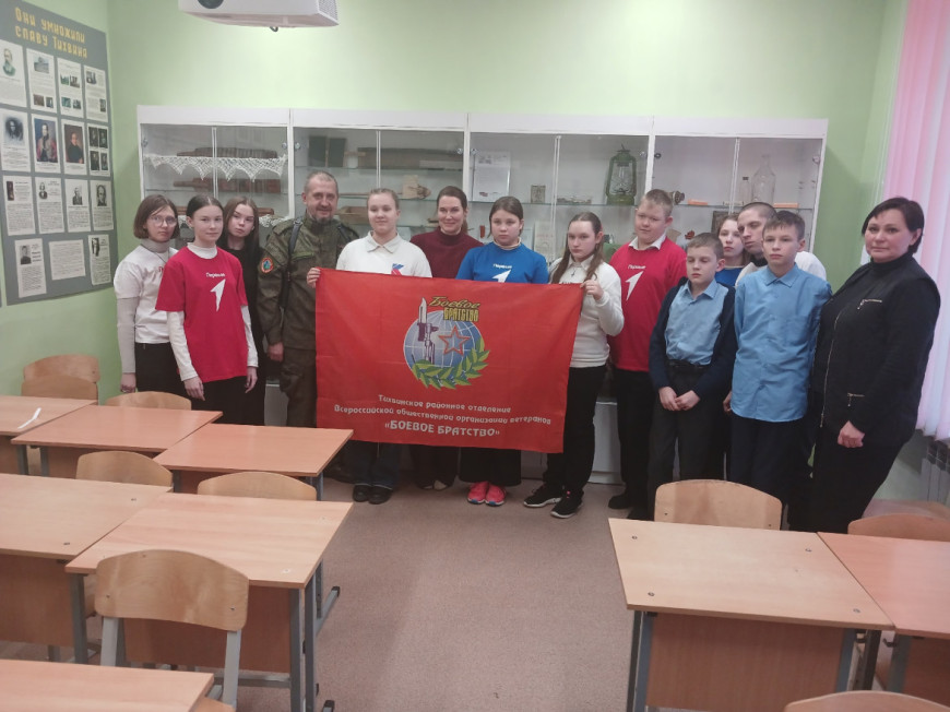 13 февраля в Тихвинской школе-интернате Ленинградской области председатель Тихвинского отделения “БОЕВОГО БРАТСТВА” Алексей Фурсов провел урок мужества.