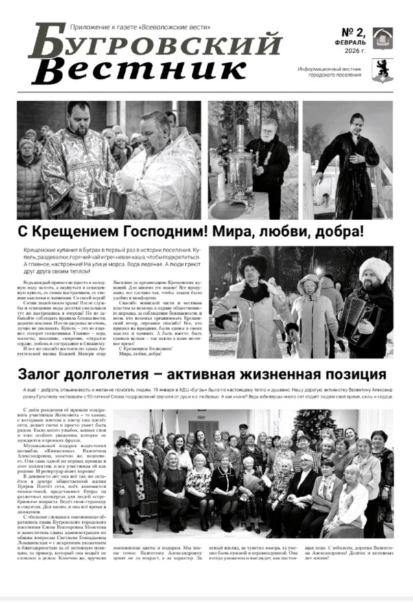 12 февраля вышел в свет второй февральский выпуск газеты “Бугровский Вестник” Всеволожского района.