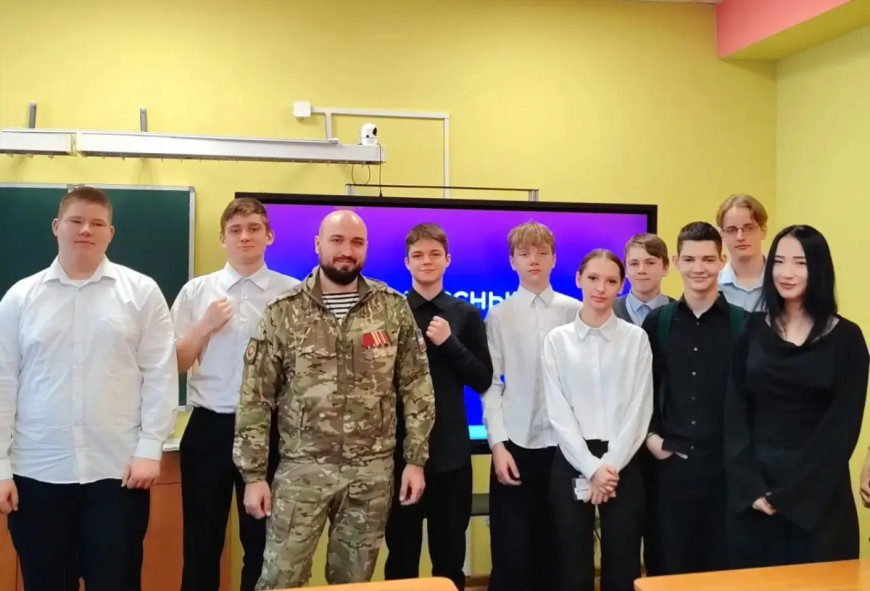 17 февраля ветеран СВО из Камчатского краевого отделения «БОЕВОГО БРАТСТВА» Евгений Брейкин провел урок мужества для учеников школы №32 Петропавловска-Камчатского.