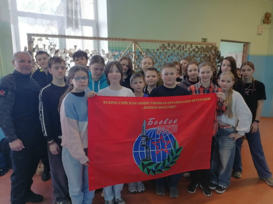 18 февраля ученики 6Б класса Гдовской школы вместе с руководителем Гдовского отделения “БОЕВОГО БРАТСТВА” Александром Садковым участвовали в акции “Всё для Победы”. В рамках акции активисты плетут маскировочные сети.