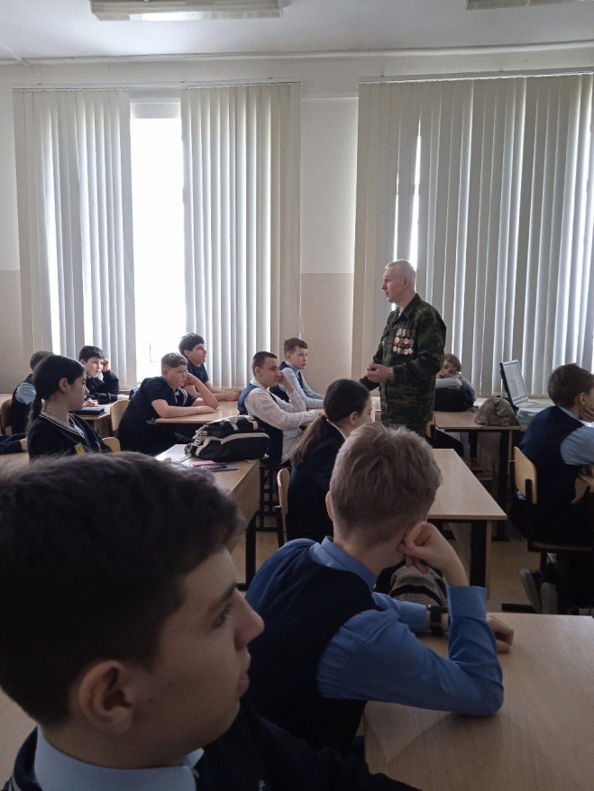 Ветеран рассказал школьникам о земляках-кировчанах, защищавших Родину с оружием в руках, знаменитых маршалах и героях Вятской земли.