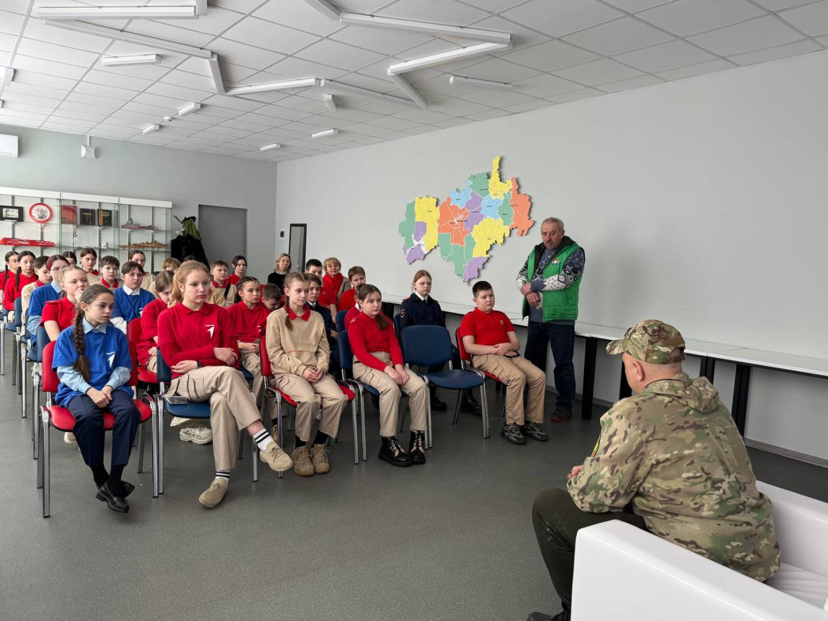 19 февраля во Дворце молодежи Йошкар-Олы для учащихся школы №23 ветеран Марийского республиканского отделения “БОЕВОГО БРАТСТВА”, участник СВО Михаил Гордеев провёл урок мужества на патриотическую тему.