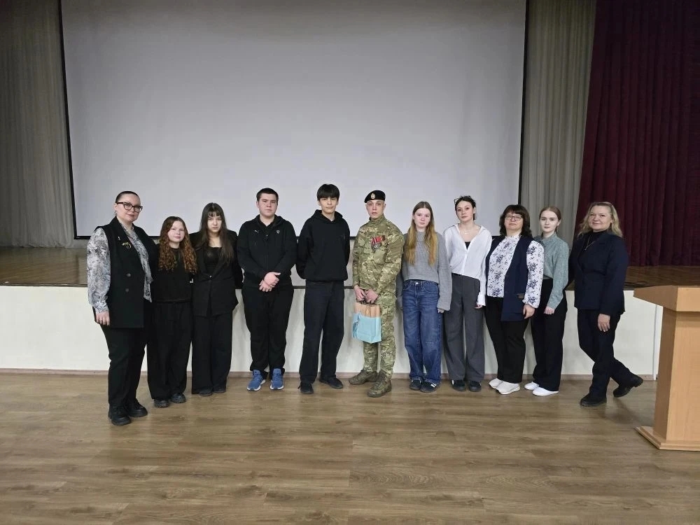 19 февраля в актовом зале муринской школы № 1 для старшеклассников прошёл урок мужества.