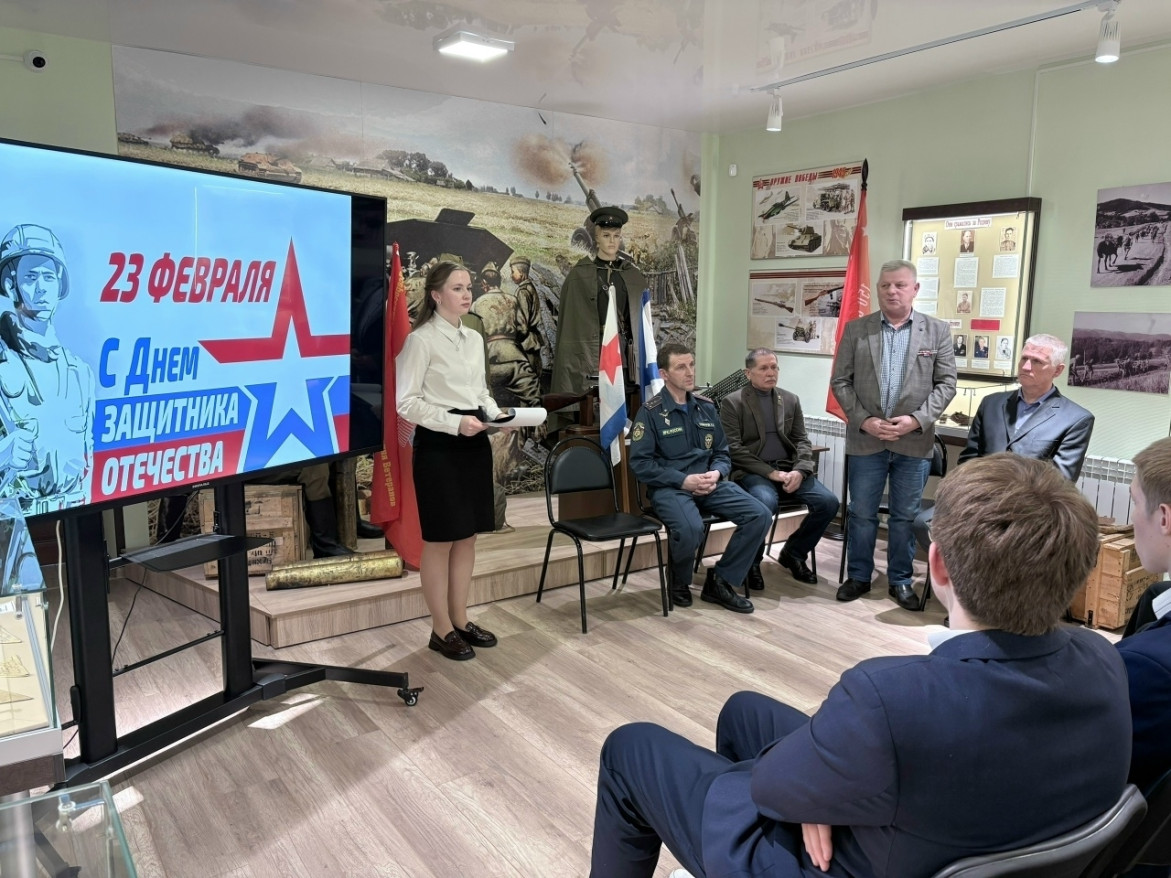 20 февраля в Краеведческом музее села Кичменгский Городок Вологодской области для учеников 11-го класса Кичменгско-Городецкой школы прошёл урок мужества «Защитники Отечества: сквозь время».