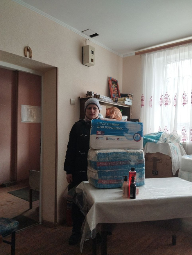 18 февраля представитель Вологодского отделения «БОЕВОГО БРАТСТВА» Наталья Титова доставила партию гуманитарной помощи в Харцызск для  состоящих на учете в местной общественной организация инвалидов «Искра».