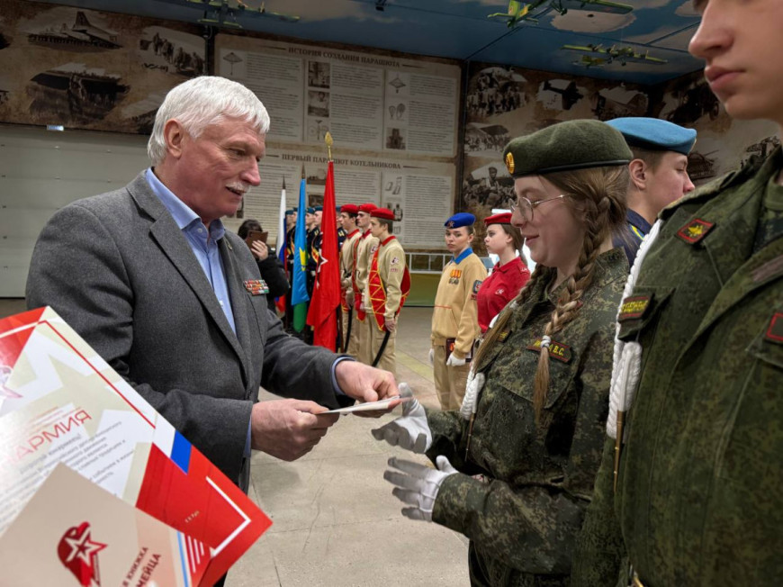 Сергей Рудь вручил отличившимся в 2025 году юнармейцам знаки отличия «Юнармейская доблесть». Александр Костров и Александр Мирзоян пожелали юнармейцам хорошей учебы и всегда быть готовыми к защите Родины.