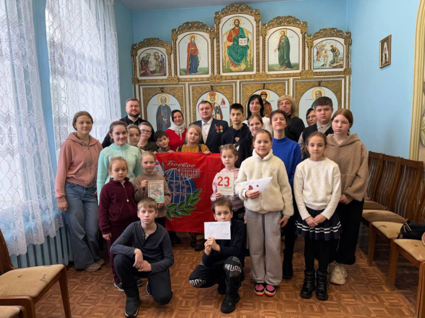 22 февраля, в преддверии Дня защитника Отечества, в воскресной школе при храме иконы Божией Матери «Всех скорбящих Радость» в Щёкине состоялся урок мужества.