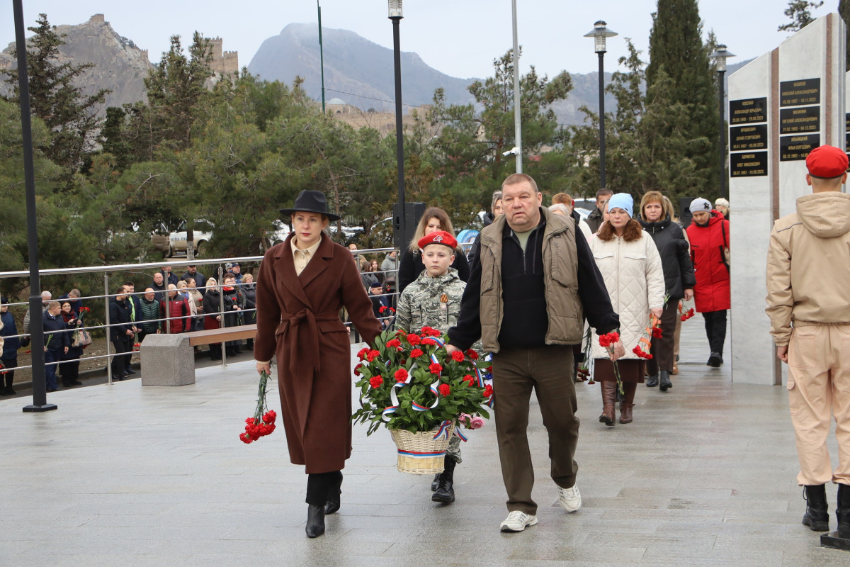 Память погибших воинов судакчане почтили минутой молчания и возложили цветы к мемориалу ветеранов локальных войн и военных конфликтов.