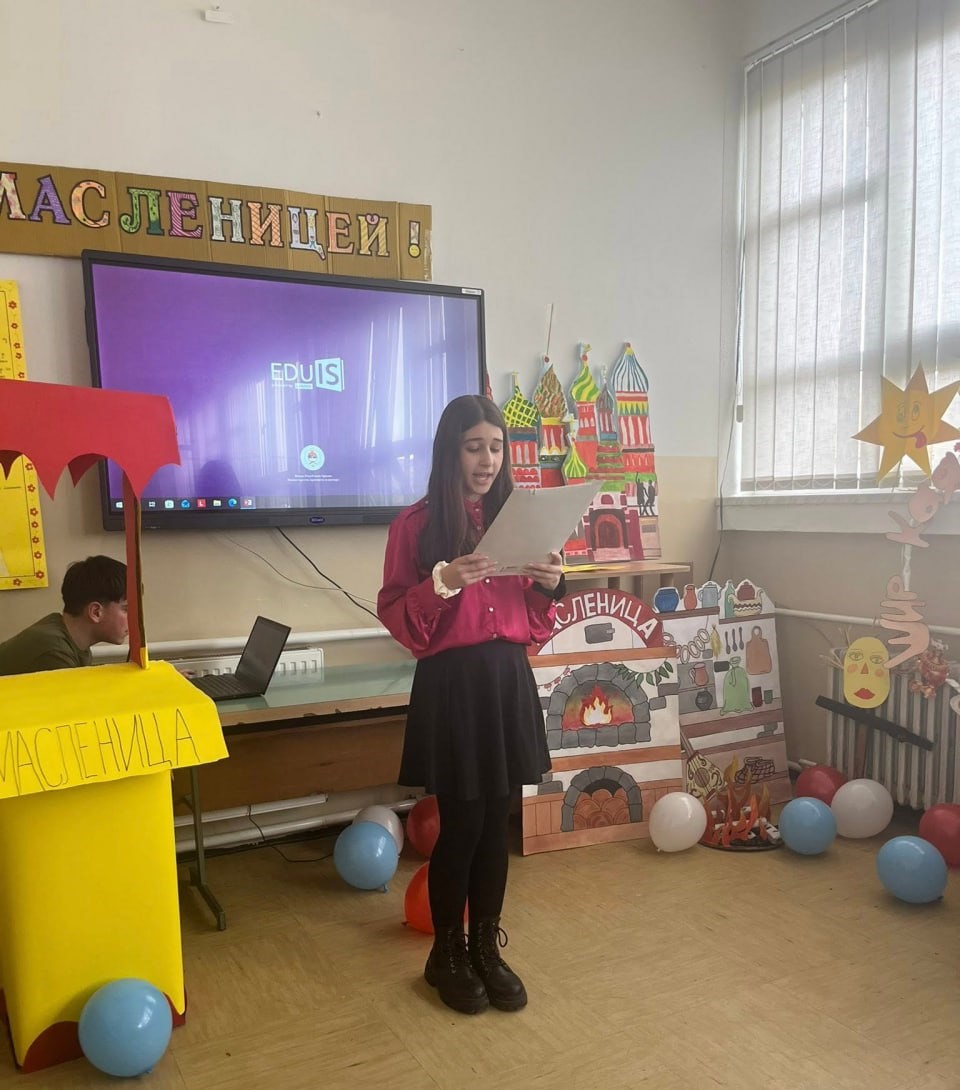 Праздник начался с краткой лекции об истории и значении Масленицы в русской культуре. Ученики рассказывали об обычаях, сопровождающих эту неделю веселья, а также о традиционных блинах, символизирующих солнце. Состоялось общение во время приготовления и дегустации блинов, где ученики проявили креативность и командный дух. Учебное пространство было украшено мотивами русской народной иконописи. Отметив Масленицу, школа еще раз продемонстрировала уважение к культуре братского русского народа.