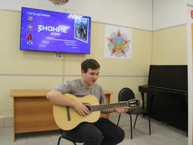 В ходе встречи поколений студенты Новотроицкого политехнического колледжа, воспитанники объединения «Новотроицк. Код города» подготовили подарок ветеранам. Артём Алюкин исполнил музыкальное произведение на гитаре, а Никита Швайко сделал фотографии и запись встречи.