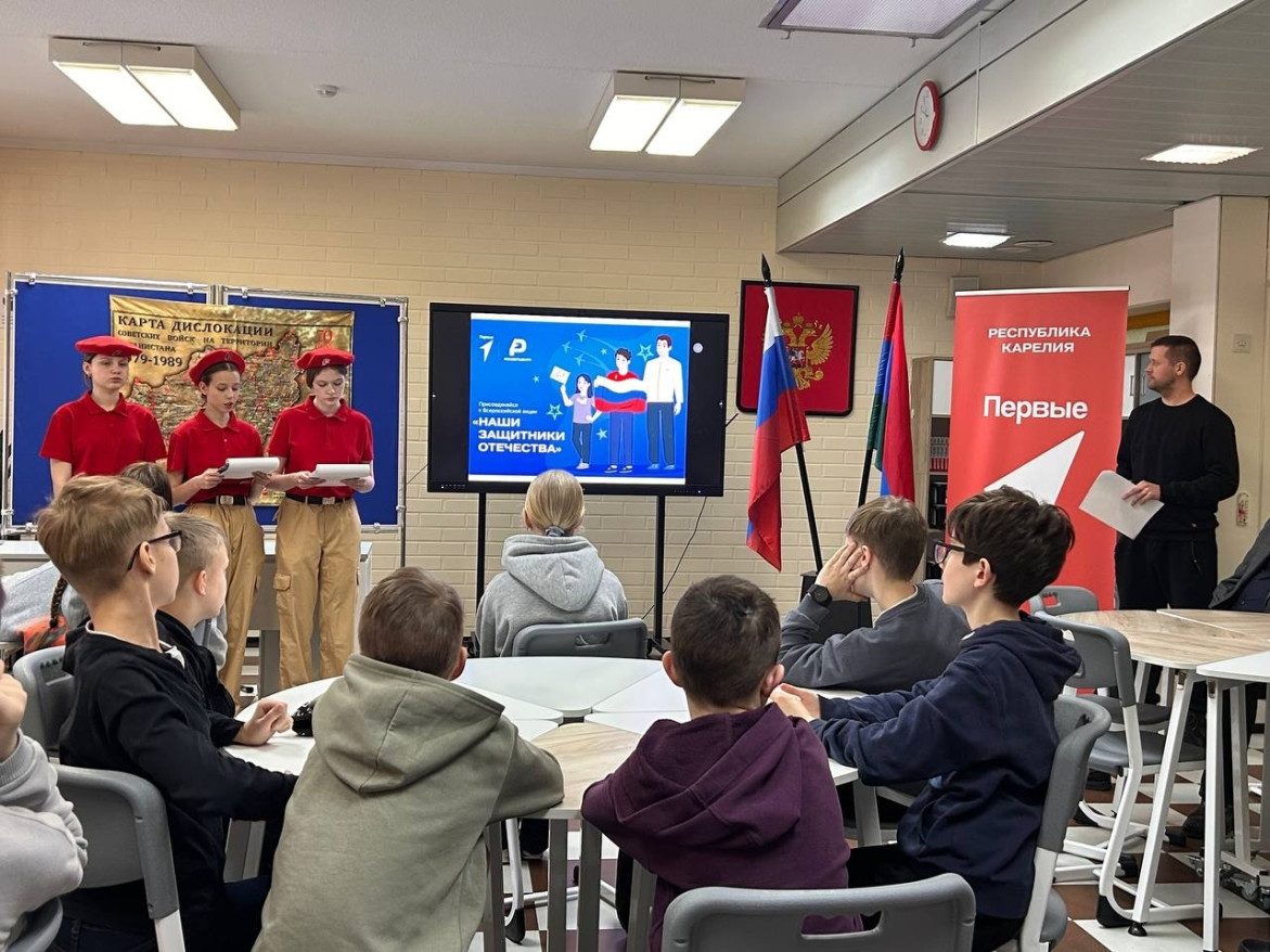 18 февраля в школе № 1 имени Я. Ругоева в Костамукше прошёл урок мужества.