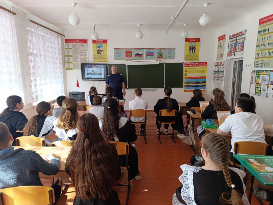2 марта в школе №14 села Полтавченское Кущевского района Краснодарского края для учеников 5-7-х классов прошел урок мужества, презентационное мероприятие проекта Краснодарской городской детско-юношеской общественной организацией “Школьный краеведческий поисковый отряд “Патриоты Кубани” Павла Боровикова, члена ”БОЕВОГО БРАТСТВА» Краснодара.