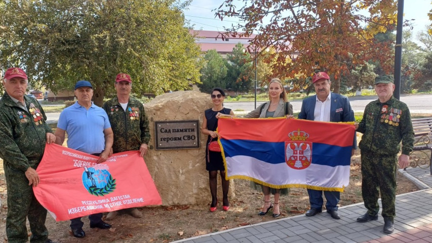 Представители ветеранской организации посетили парк и памятник Герою России Магомеду Нурбагандову, где посадили дерево, посвященное герою Сербии генералу Божидару Деличу.