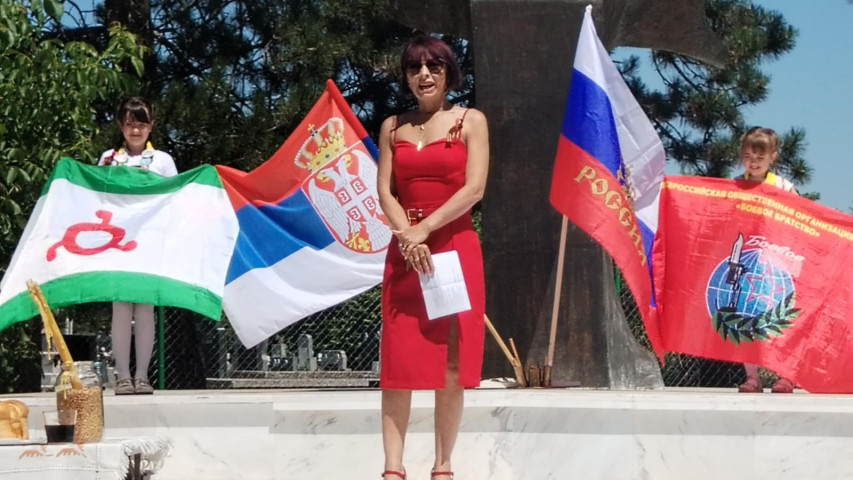 Представитель «БОЕВОГО БРАТСТВА» в Сербии Ольга Литвина провела акцию «Георгиевская лента» при поддержке членов отряда молодых разведчиков и обратилась к присутствующим с речью, в которой рассказала о Брестской крепости, о защитнике крепости Барханоеве Уматгирее, уроженце Ингушской республики, о сотрудничестве с поисковым отрядом «Малгобек».