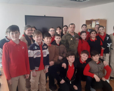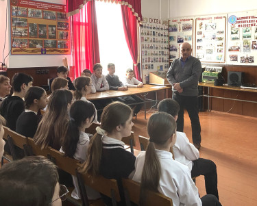 Ветеран "БОЕВОГО БРАТСТВА" Моздока провел урок мужества для юнармейцев школы №5