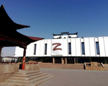 На фасаде Тувинского театра развернули большой плакат «Z»